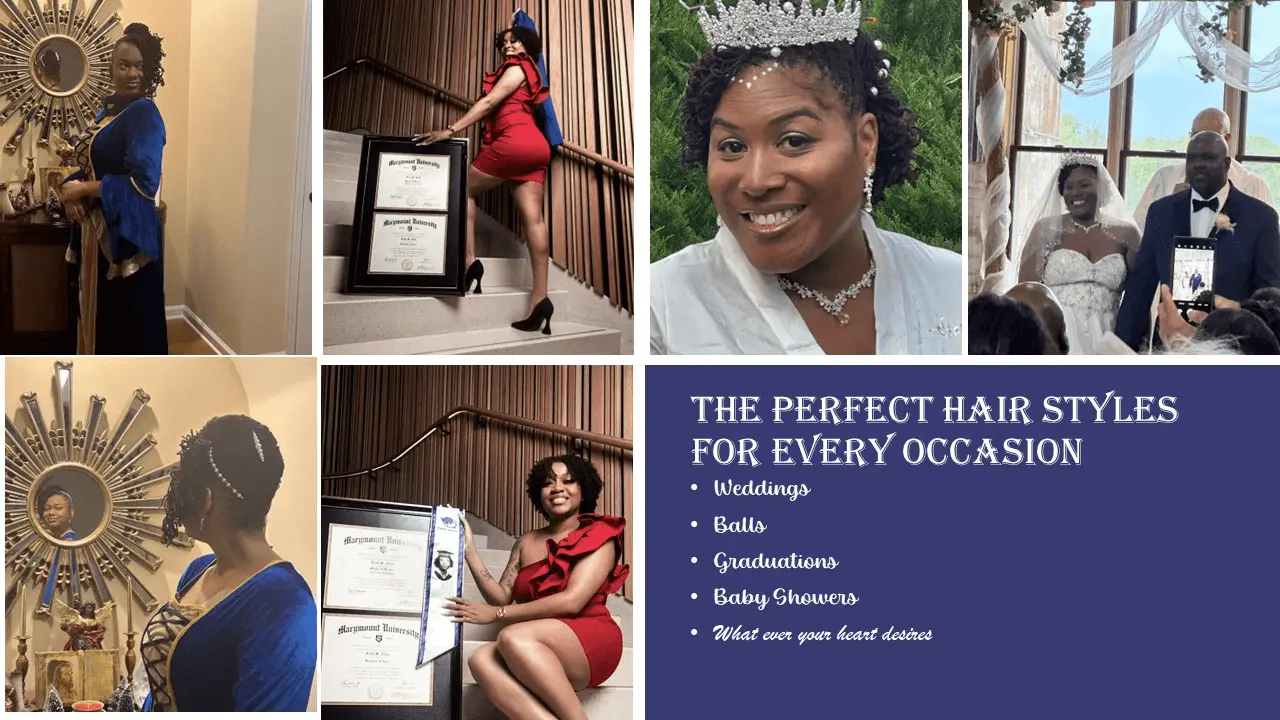 Book Your Appointment View GalleryAt Heavenly Natural Haircare, we specialize in creating the perfect hairstyle to complement any special event in your life. Whether you’re a bride preparing for your dream wedding, attending an elegant ball, or celebrating your graduation, we’ve got you covered with stunning, customized hairstyles that are sure to turn heads. Our expert stylists are also here to ensure you look flawless for baby showers, adding a radiant touch to your celebration. Whatever the occasion may be, from intimate gatherings to grand affairs, we are dedicated to crafting the perfect look that leaves you feeling beautiful, confident, and ready to shine. With Heavenly Natural Haircare, no event is too big or too small—we’re here to make sure your hair is as memorable as the moment itself! We cater to the following events: