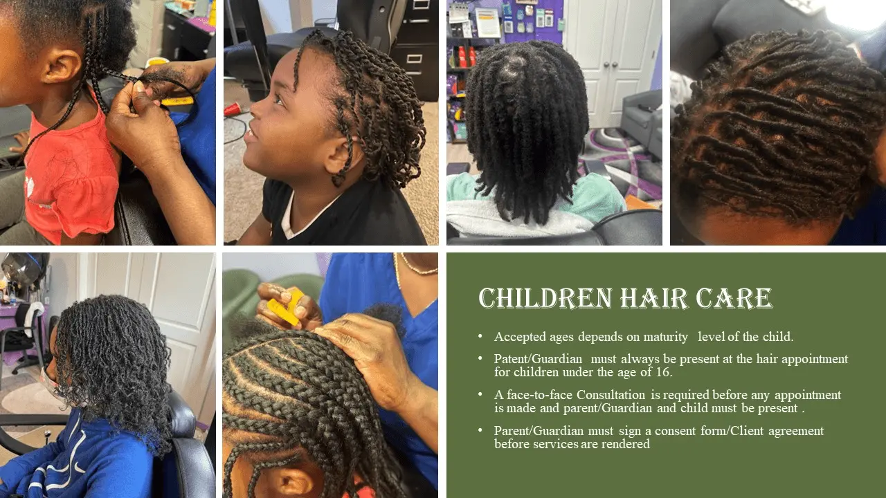 At Heavenly Natural Haircare, we understand the unique needs of our younger clients and offer specialized hair care services for children. The acceptance of any child for our services depends on their age and maturity level, ensuring they are comfortable and ready for the experience. For children under the age of 16, we require that a parent or guardian be present throughout the entire appointment to provide support and supervision. Prior to booking any appointment, a face-to-face consultation is mandatory, with both the parent/guardian and the child present, allowing us to assess the child’s hair and scalp and discuss the best approach for their specific needs. Before any services are rendered, the parent or guardian must sign a consent form and client agreement, ensuring complete transparency and mutual understanding. Our goal is to create a safe, relaxed, and nurturing environment where both parents and children feel at ease throughout the entire process. We follow the below-mentioned rules: