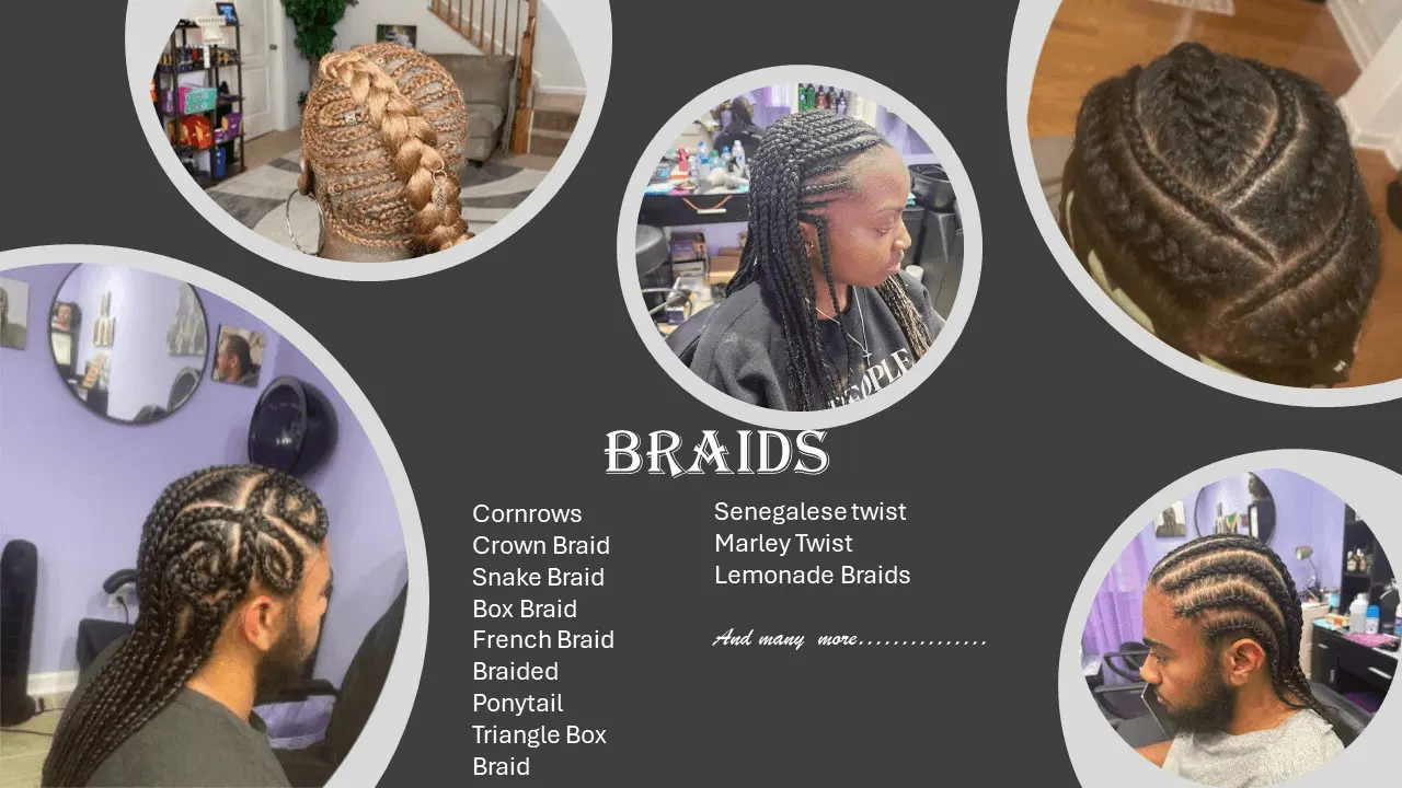 At Heavenly Natural Haircare, we take pride in offering an array of stunning braid services that cater to all styles and preferences. Our cornrows are a classic, timeless option, perfect for achieving a sleek and polished look, while our crown braids give you an elegant, regal style fit for any special occasion. For those who love a unique twist, our intricate snake braids offer a modern and edgy aesthetic. We also specialize in box braids, providing a protective style that is versatile, low-maintenance, and perfect for everyday wear. Our French braids are ideal for a more traditional, yet chic, appearance, and for a sleek, pulled-back look, our braided ponytails combine both style and convenience. For clients seeking a creative variation, our triangle box braids add a geometric flair, making a bold statement while still being protective. With each service, we ensure that your hair is treated with care and that the result reflects your individuality and beauty. Pick your favorite braid style: